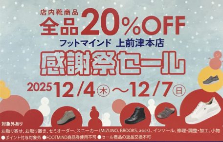 店内の靴商品が20%OFFで手に入る特別な4日間です!!